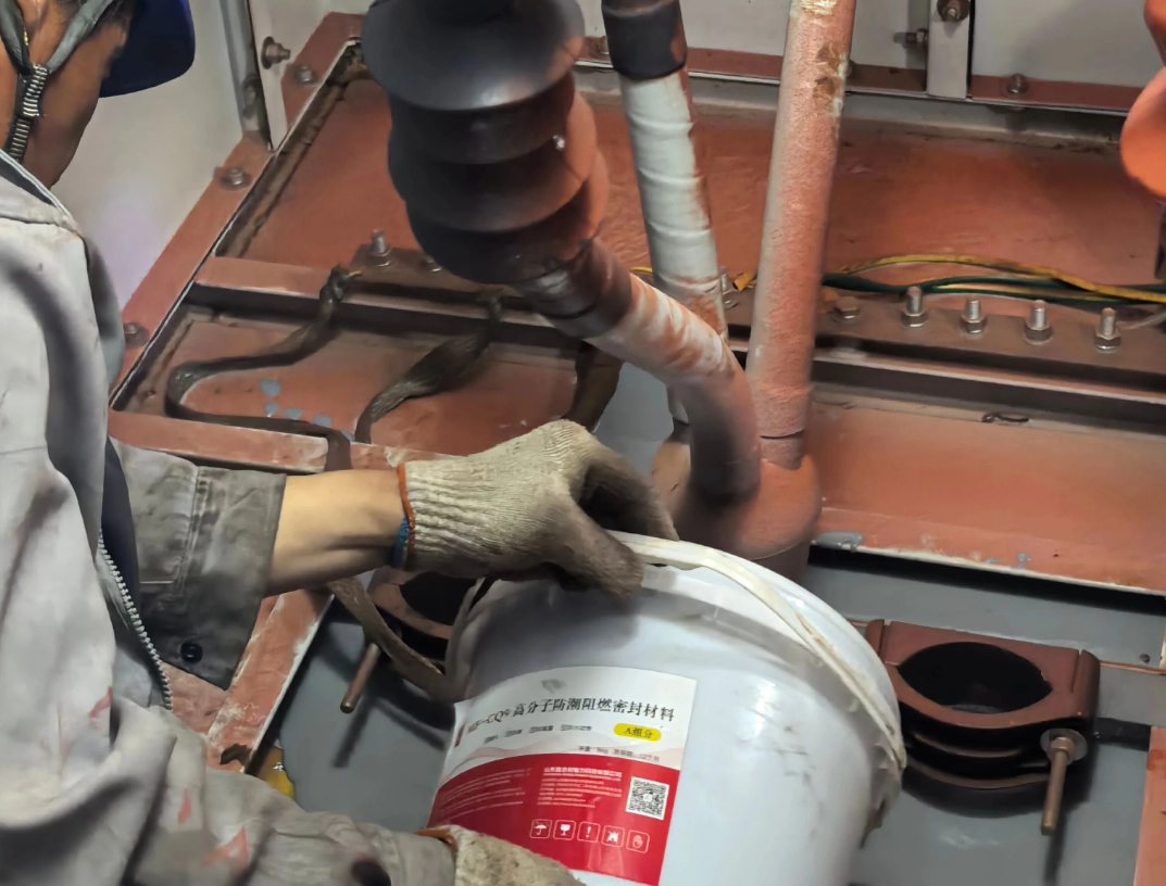 冬季设备内外温差大,凝露易引发短路锈蚀。鑫合利采用 “主动 + 被动” 防护:SHO-TP1 超疏水涂料:接触角>150°、滚动角<5°,让水汽快速滑落,,适配输变电设备外表面。MF-CQ9 密封材料 + MF-CQ9N 胶泥:前者自流平密封开关柜、电缆分接箱孔洞,兼具防潮防火;后者可捏塑补漏,不发硬、高温不流淌,实现长期密封。